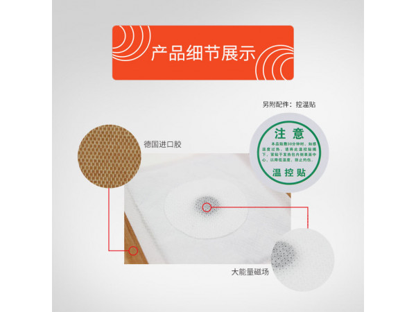 該產(chǎn)品由醫(yī)用無紡布、遠紅外布、醫(yī)用膠、離型紙、磁片、發(fā)熱袋(含有還原鐵粉、活性炭、蛭石粉、醫(yī)用樹脂、鹽、水)組成。