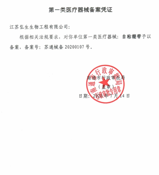 江西省+動態(tài)第62批 自粘繃帶 蘇通械備20200107號 2.5cm*450cm 5.2800