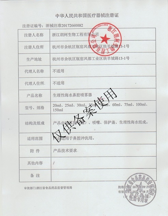 陜西省第五批普通耗材網(wǎng)上陽光采購 生理性海水鼻腔噴霧器 浙械注準(zhǔn)20172660882 35ml 45
