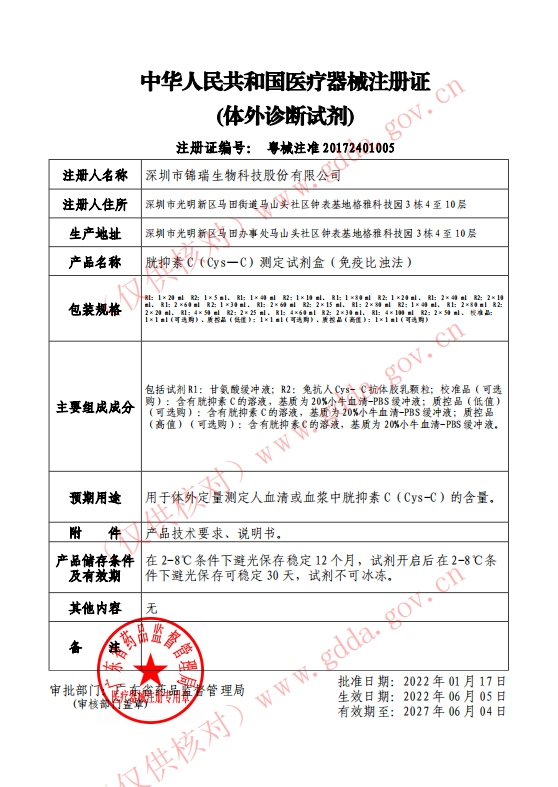 用于體外定量測定人血清或血漿中胱抑素C(Cys-C)的含量。