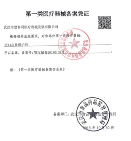 鄂漢械備20180142號/武漢云水藍(lán)科技有限公司造口皮膚保護(hù)劑