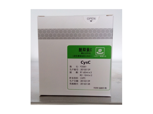 試劑1:磷酸鹽緩沖液、聚乙二醇6000;試劑2:抗人CysC的致敏乳膠顆粒懸液。