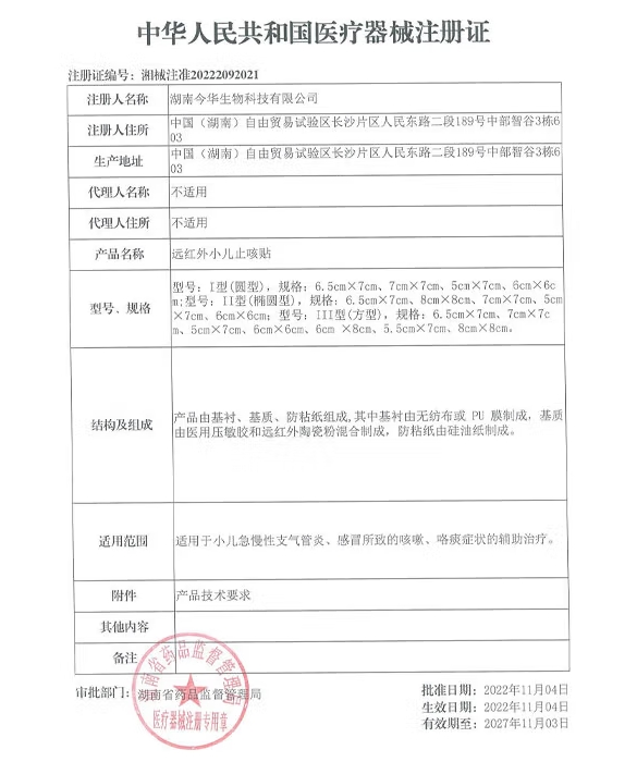 遠(yuǎn)紅外小兒止咳貼
