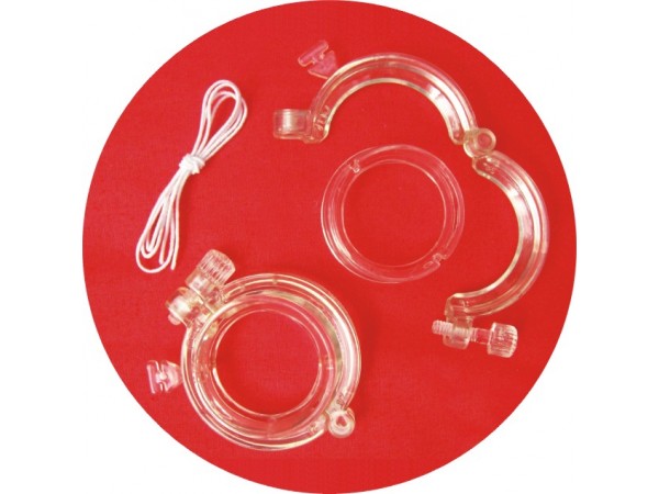 一次性使用包皮套扎器由內(nèi)環(huán)(其中8mm-18mm為手柄環(huán))、外環(huán)(選配)和彈力線(選配)組成。