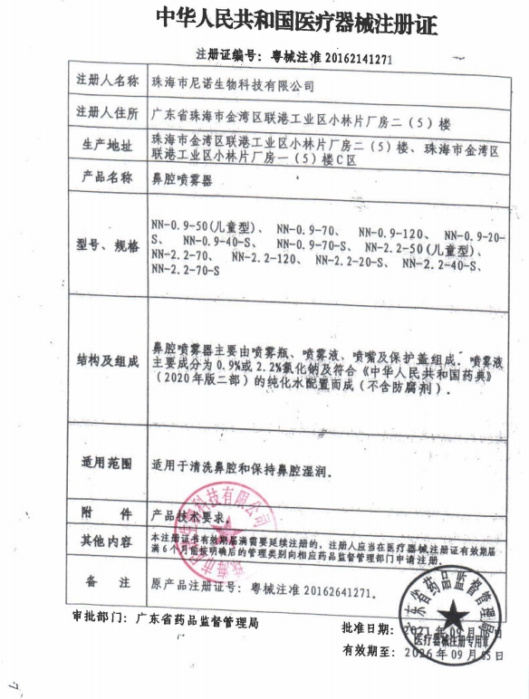 江西省+動態(tài)第32批 鼻腔噴霧器 粵械注準(zhǔn)20162141271 NN-2.2-50(兒童型) 6240.0000