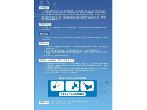 產(chǎn)品描述變更本品由聚酯纖維和棉紗加工而成;預(yù)期用途變更為用于骨折或軟組織等損傷的外固定。