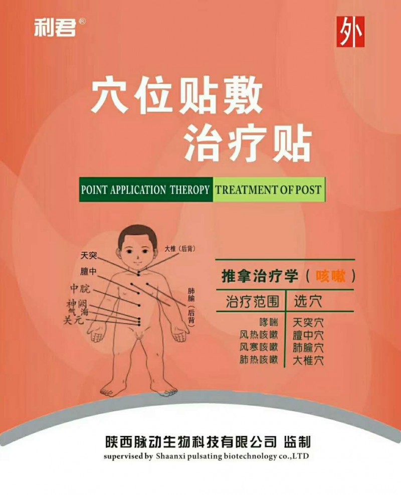 產(chǎn)品名:利君新品上市穴位貼敷治療貼/咳嗽/小兒腹瀉/便秘成方貼