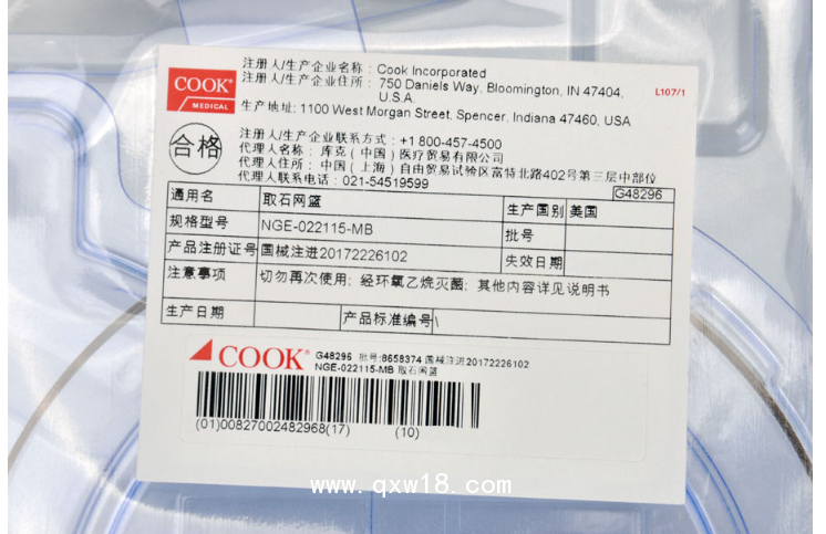 產(chǎn)品名:美國庫克 COOK取石網(wǎng)籃NGE-022115-MB