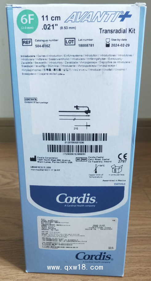 最新強生Cordis導管鞘及穿刺套件橈動脈鞘504-616Z招商