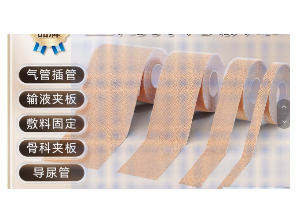 將其他醫(yī)療器固定到人體的特定部位背材上涂有具有自粘特性的膠粘劑的膠布膠布涂膠面有保護(hù)層 非無(wú)菌提供,一次性使用 不與創(chuàng)面直