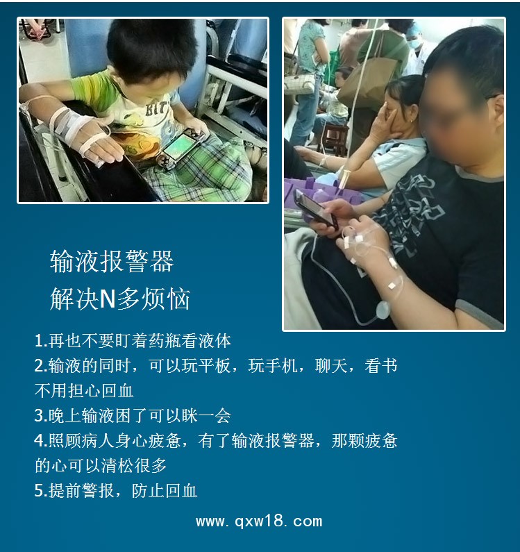 1、適用性強:配有智能傳感器的輸液提醒器,能實時監(jiān)測輸液管內(nèi)液體變化,適用于各種藥水、血液、藥水等,做到及時提醒;