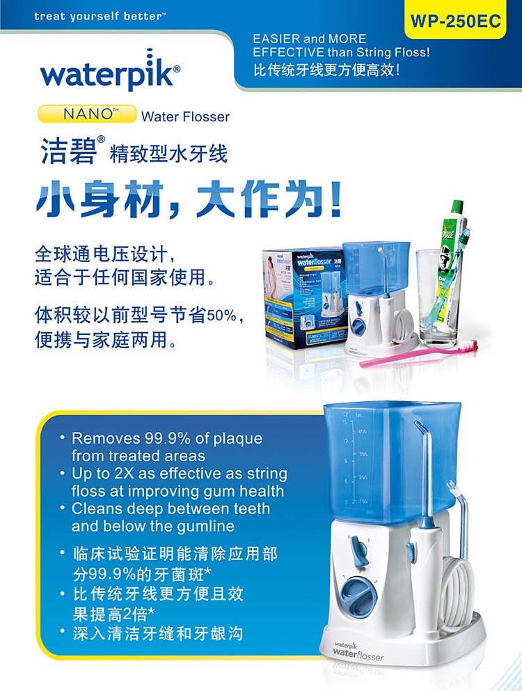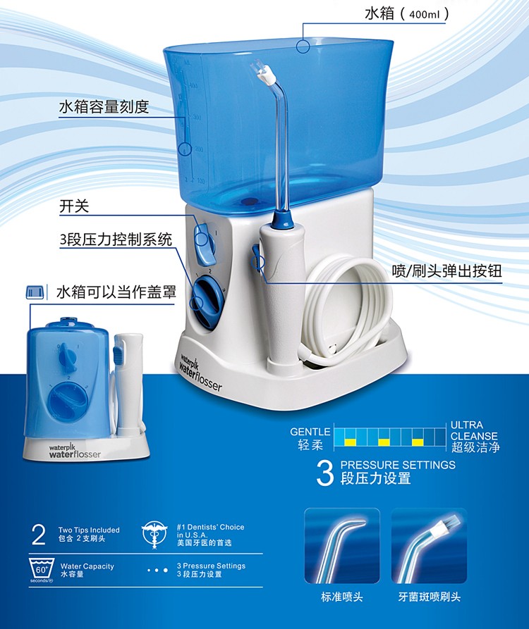 美國(guó)潔碧waterpik WP-250EC沖牙器水牙線產(chǎn)品說(shuō)明: