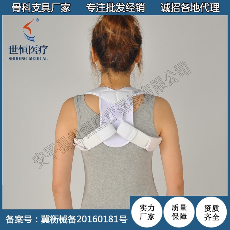 (4)穿戴方便、透氣性好,松緊調(diào)節(jié)十分方便。? ?鎖骨固定帶,背姿帶,背部矯正帶,鎖骨帶