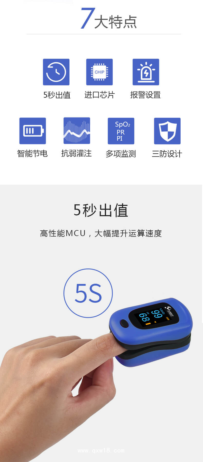 準(zhǔn)確測量血氧、脈率、PI,獨(dú)有的抗運(yùn)動(dòng)算法
