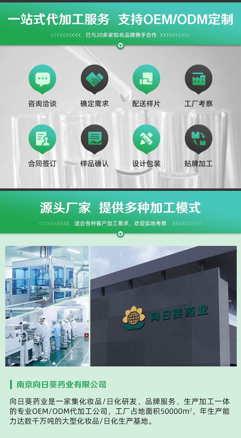 向日葵藥業(yè)擁有多年消字號、械字號產(chǎn)品OEM貼牌代工經(jīng)驗,可以從設(shè)計、包裝、原料、配方等各方面幫助您解決貼牌問題。歡迎前來咨詢我們,提前跟我們聯(lián)系,隨時可以來工廠驗廠