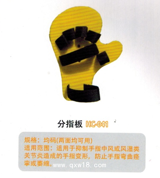 適用范圍:適用于抑制手指中風(fēng)或風(fēng)濕類關(guān)節(jié)炎造成的手指變形,防止手指彎曲痙攣或萎縮。