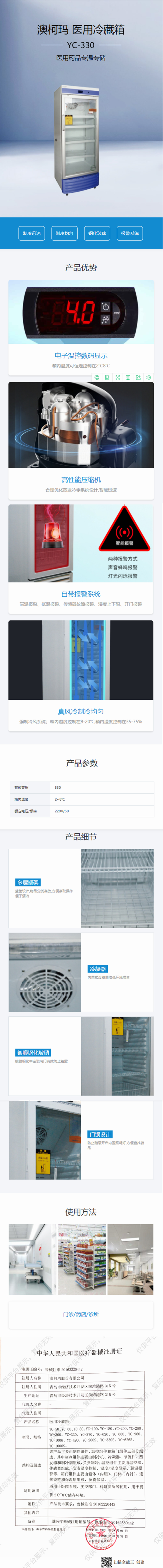 澳柯瑪 醫(yī)用冷藏箱 YC-330產(chǎn)品說明: