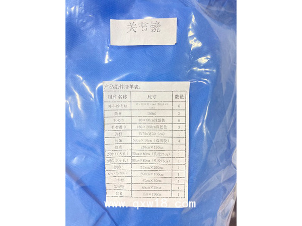本產(chǎn)品由一-次性使用無(wú)菌手術(shù)膜、包布、洞巾、臺(tái)會(huì)、手術(shù)鋪巾、手術(shù)巾、醫(yī)用彈力繃帶(四肢)、儀器套、擦手紙、醫(yī)用外科敷料、夾子托盤(pán)、彎盤(pán)、鹽水碗、量碗、藥杯等組成,各手術(shù)包根據(jù)需要選擇不同的配件(有醫(yī)院收費(fèi)目錄)