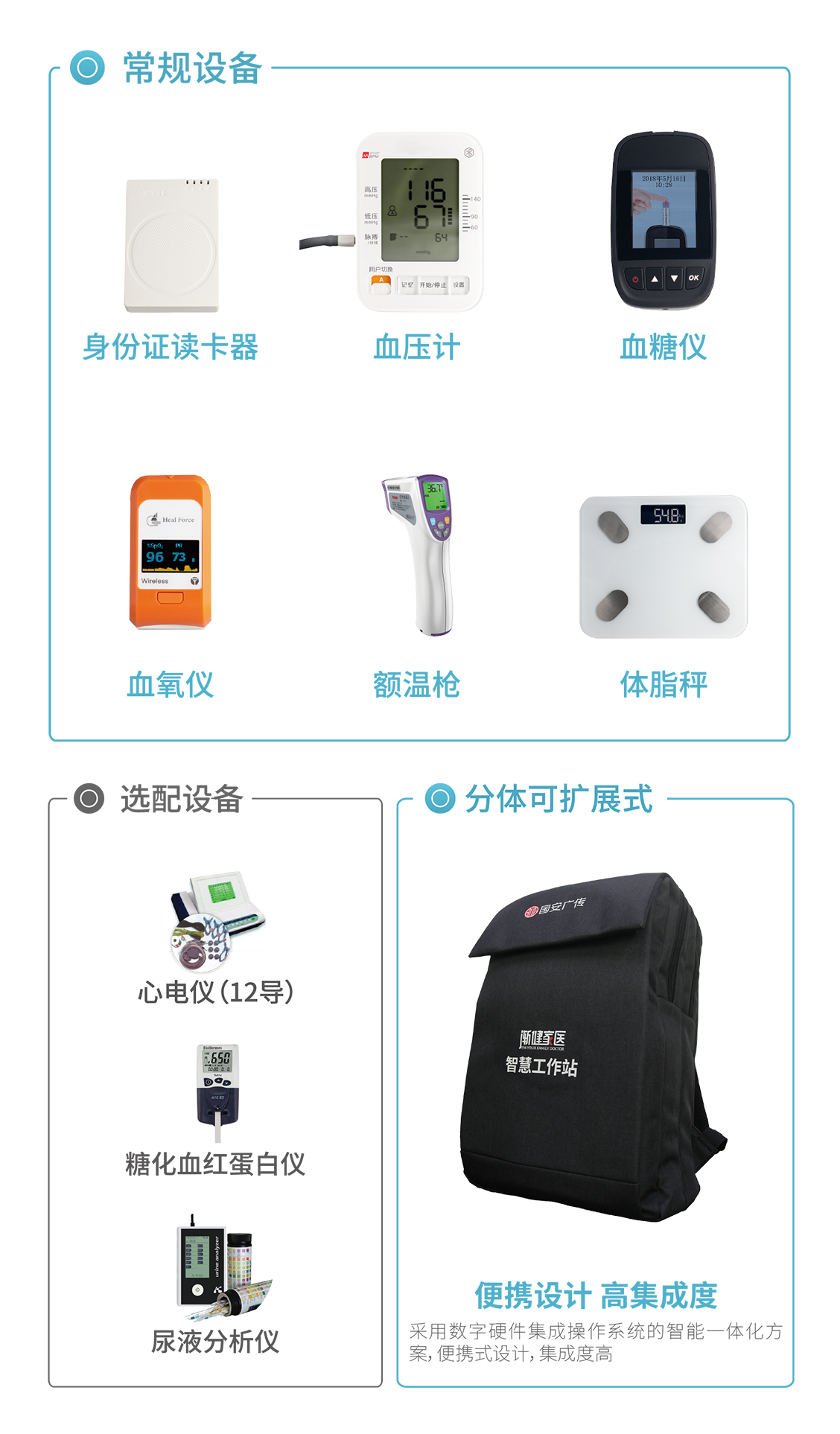 漸健家醫(yī)家庭醫(yī)生簽約隨訪工作站_公共衛(wèi)生體檢隨訪包_家庭醫(yī)生簽約隨訪包_財(cái)政貼息_基層賦能_健康老齡化項(xiàng)目采用數(shù)字硬件集成操作系統(tǒng)的智能一體化方案,便攜式設(shè)計(jì),集成度高,成品形態(tài)支持分體可擴(kuò)展式或一體集成式,適用于家庭醫(yī)生針對(duì)轄區(qū)居民開展規(guī)范化、全周期的各類健康服務(wù)場(chǎng)景。