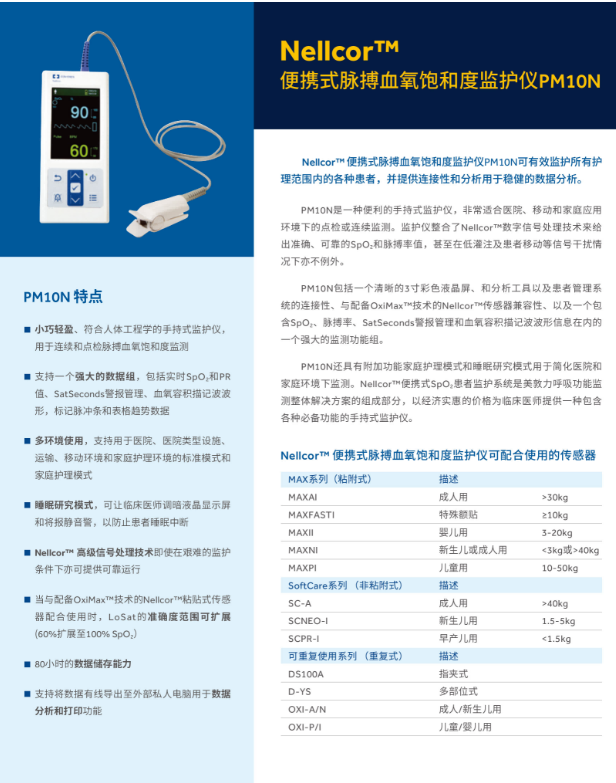 最新的技術(shù),Nellcor? Portable SpO? PM10N手持脈搏血氧飽和度測(cè)定儀