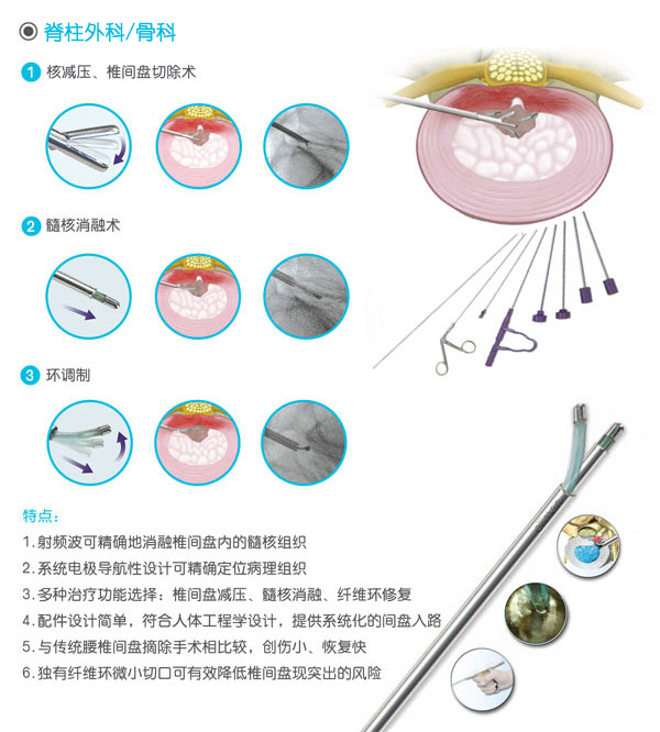 脊柱外科/骨科、神經(jīng)外科、整形美容外科、皮膚性病科、眼整形外科、口腔頜面外科、婦科、耳鼻喉科等手術(shù)微創(chuàng)治療