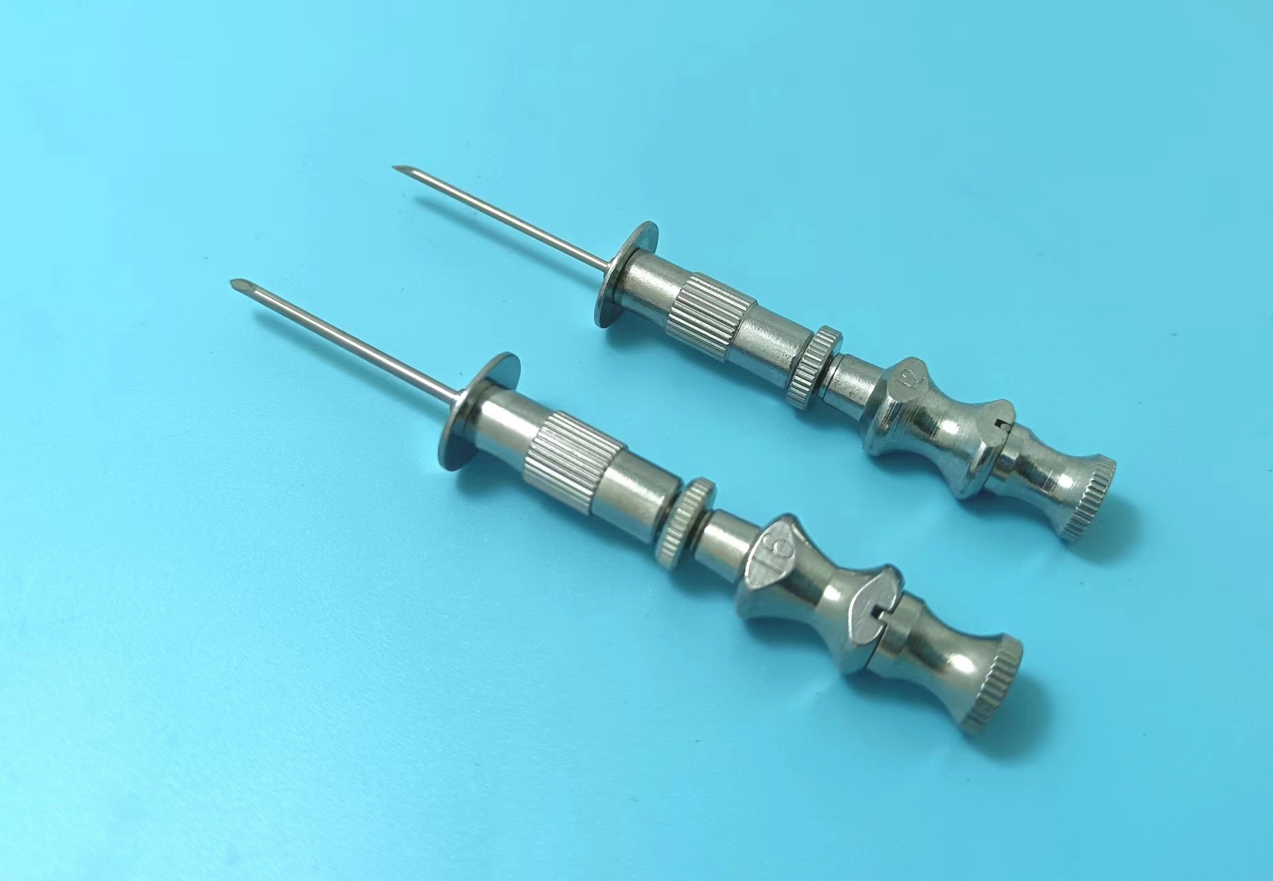 骨穿刺針,由內(nèi)針、外針、調(diào)節(jié)深度螺母組成,針尖鋒利,材料為優(yōu)質(zhì)不銹鋼,乃磨乃腐蝕。常規(guī)產(chǎn)品型號1.2、1.6、1.8,長度30、50mm,可根據(jù)要求定制。