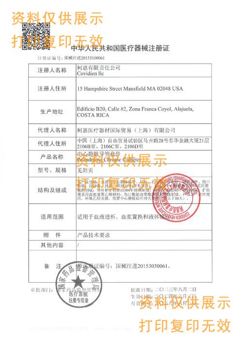 ? ? ? ?本產(chǎn)品包括:血透用中心靜脈插管、導(dǎo)絲、擴(kuò)張器、穿刺針、隧道探針、傷口敷貼、注射器、封蓋、解剖刀等。血透用中心靜脈插管管體采用聚氨酯制成:導(dǎo)絲和穿刺針由304不銹鋼制成,隧道探針由303不銹鋼制成:擴(kuò)張器采用高密度聚乙烯材料:傷口敷貼由聚酯薄膜和棉線制成。產(chǎn)品為一次性使用,環(huán)氧乙烷滅菌。留置中心靜脈后可持久使用(可大于30天)。
