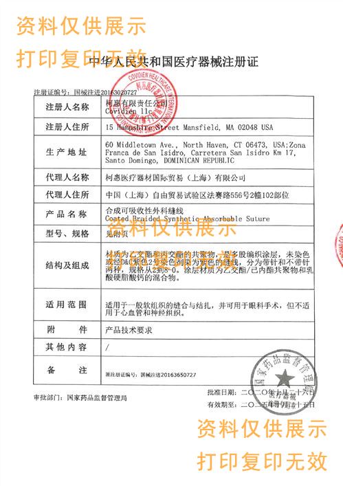 ? ? ?材質(zhì)為乙交酯和丙交酯的共聚物,是多股編織涂層,未染色或經(jīng)D&C紫色2號(hào)染色劑染為紫色的縫線,分為帶針和不帶針兩種,規(guī)格從2到8-0。涂層材質(zhì)為乙交酯/已內(nèi)酯共聚物和乳酸硬脂酸鈣的混合物。