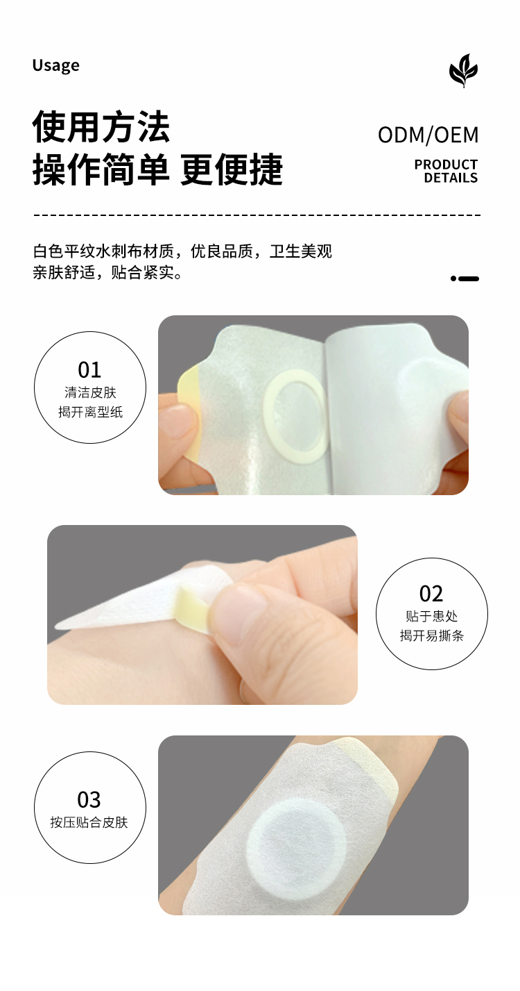 醫(yī)用透氣膠帶異形膏藥貼穴位貼空白貼OEM代加工產(chǎn)品說明:
