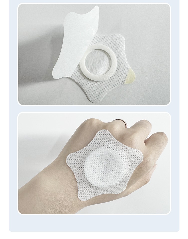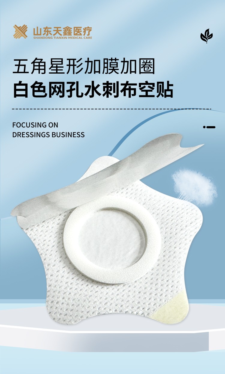 五角星形加防滲圈防滲膜 白色網(wǎng)孔水刺布空貼膏藥布裸貼產(chǎn)品說明: